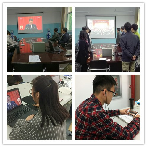 会议室集中观看直播,个别师生自行收看收听开幕式。开幕式后师生就大会主题不忘初心,牢记使命,高举中国特色社会主义伟大旗帜,决胜全面建成小康社会,夺取新时代中国特色社会主义伟大胜利,为实现中华民族伟大复兴的中国梦不懈奋斗以及砥砺前行的5年谈自己的收获和对于未来的规划。