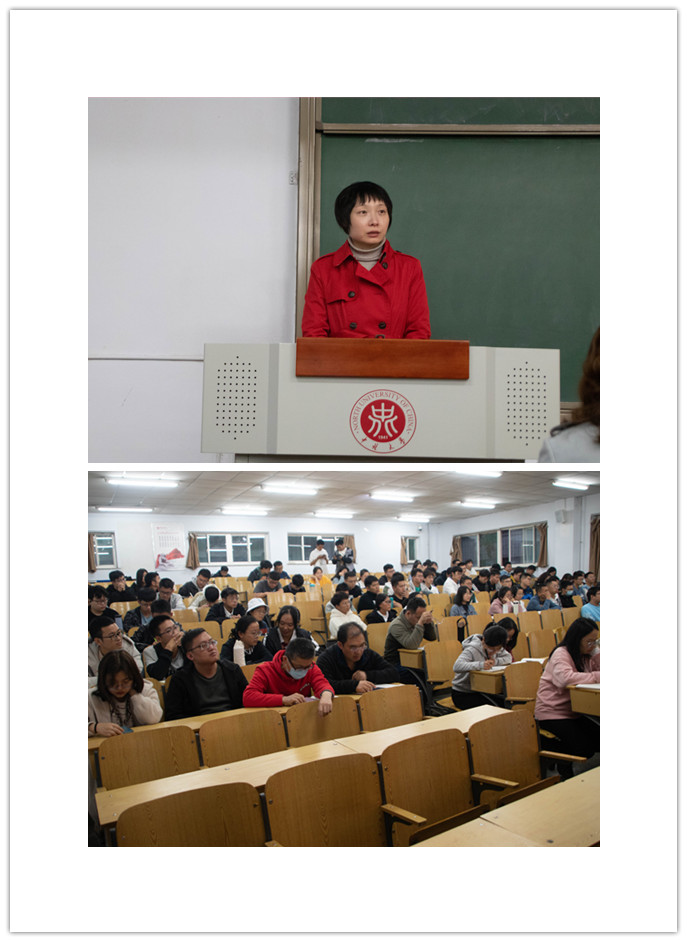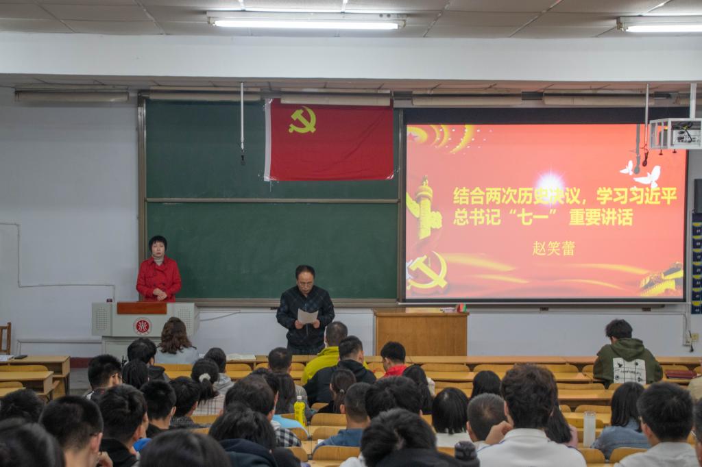 赵笑蕾院长首先作了题为《结合党的历史上两次“历史决议”,学习习近平总书记“七一”重要讲话精神》的专题宣讲。她从四个方面进行了详细阐释,一是坚持党的正确领导,极其重要;二是人民的拥护和支持,是党执政的根基;三是马克思主义基本原理与中国具体实际结合,是思想保证;四是理论上的清醒,政治上的坚定,要落实在行动自觉上。赵院长引经据典,旁征博引,结合党的历史上《关于若干历史问题的决议》和《关于建国以来党的若干历史问题的决议》,对照习近平总书记“七一”重要讲话,深入解读了“七一”重要讲话精神的深刻内涵,给大家上了一堂生动且内涵丰富的党课。