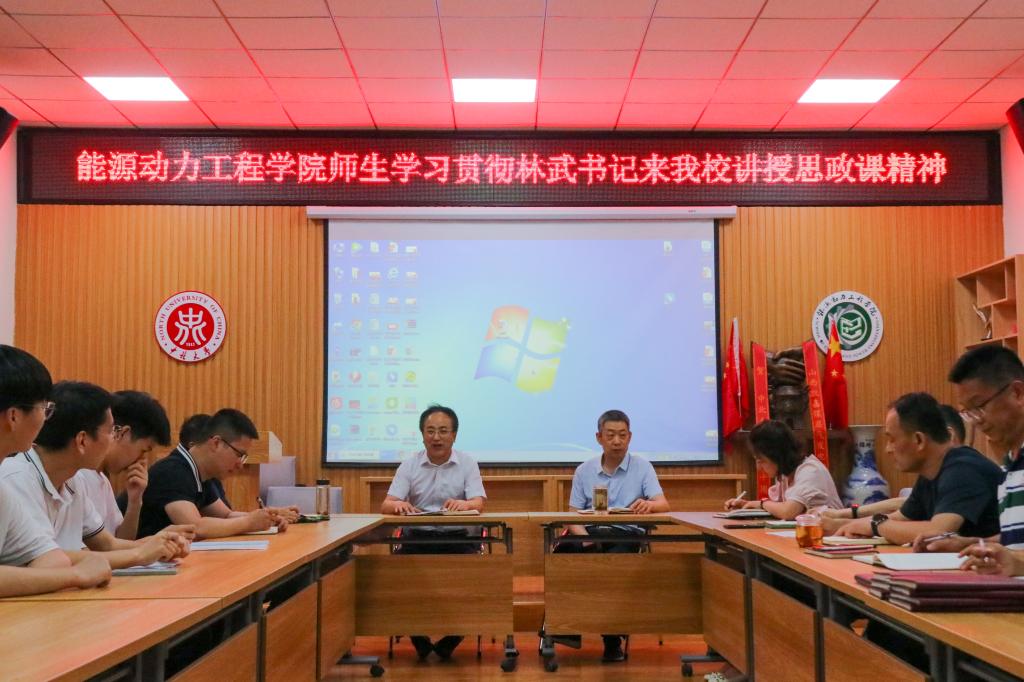 会上,李运芝同志带领大家共同学习了省委书记林武在我校讲授思政课上的重要讲话精神,并集中观看了视频新闻。