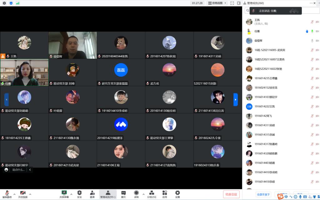 毋登辉老师围绕“党的二十大的意义”、“党的二十大要点解读”、“笃学践行二十大,争做时代新人”等三个方面深入阐释了党的二十大精神。他强调,笃学践行二十大,要做到四个要:一要勤学,下得苦功夫,求得真学问;二要修德,加强道德修养,注重道德实践;三要明辨,善于明辨是非,善于决断选择;四要笃实,扎扎实实干事,踏踏实实做人。报告主题鲜明、脉络清晰、案例典型、紧扣实际,对学生党员深刻理解和准确把握党的二十大精神有极大的启发,也对学生党员开展下一阶段的具体工作具有重要的指导意义。