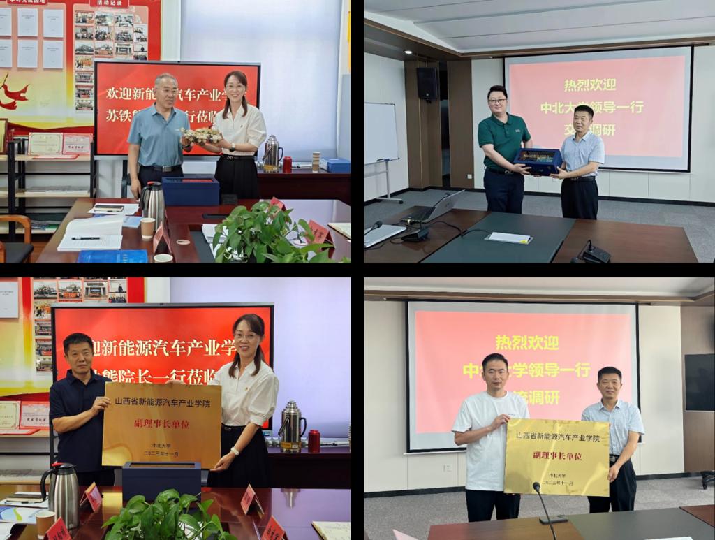 院长苏铁熊、常务副院长胡向明为山西新能源汽车工业有限公司、山西省高质量转型发展研究院赠送礼物,并授牌“山西省新能源汽车产业大发彩票