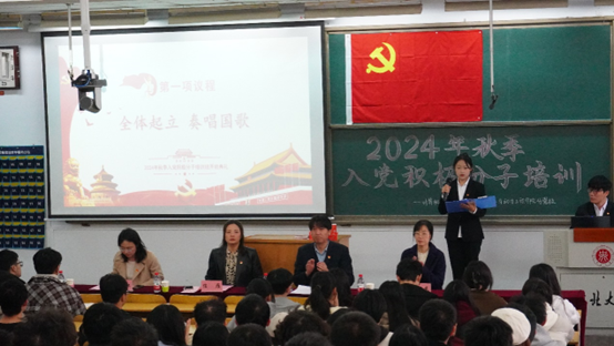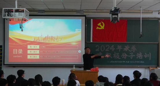 党委副书记杨晓东宣读开班致辞。杨书记指出,成为入党积极分子只是起点,要扣好入党路上的第一颗纽扣,以实际行动向党组织靠拢,赓续党的红色血脉,弘扬党的优良传统,坚持思想上积极入党,行动上严于律己。
