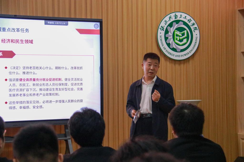 党委书记胡向明围绕《学习贯彻党的二十届三中全会精神专题铺导报告》进行讲解,强调学员们要坚定不移听党话、跟党走,不断增强“四个意识”、坚定“四个自信”、做到“两个维护”,要努力学习知识,注重理论与实践相结合,发挥自身专业特长,以真才实学服务人民,以创新创造贡献国家,让青春在强国建设、民族复兴的火热实践中绽放绚丽之花。