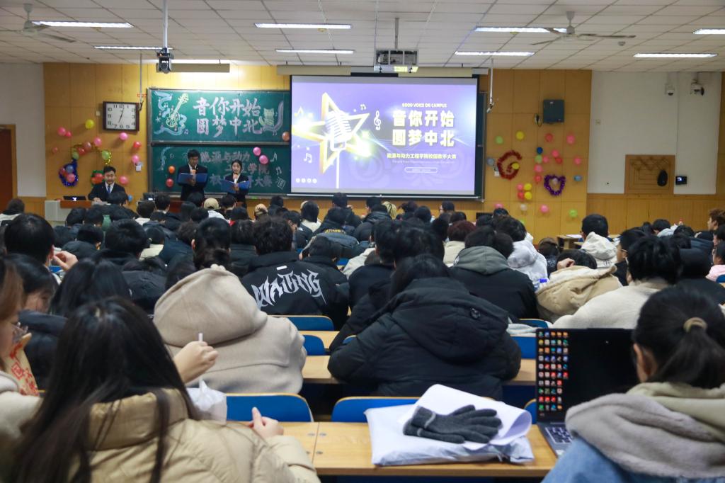 于11408H教室举办校园歌手大赛,邀请到了院团委书记李晓彧老师等20位嘉宾,为校园播撒了一片亮丽的音乐韵律。