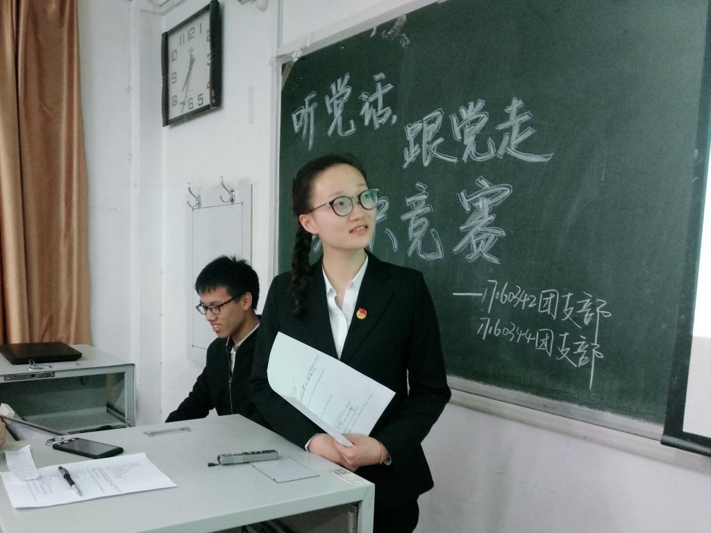 经过精心的准备工作,2018年3月30日晚,17160342团支部和17160344团支部全体成员齐聚10307教室,大赛请来了学生科乔洋老师作为嘉宾,由我班团支书郭碧宇和344团支书侯佳文主持。