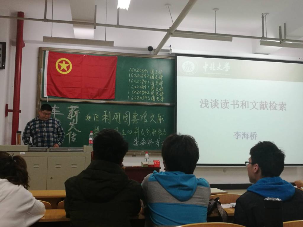 的学风建设大会上,赵书记明确表示希望提升本科生的探索能力,希望本科生从查读文献开始,了解科研过程,提高创新能力。赵书记指出,很多学生到了大四,连基本的文献查找和阅读都不会,毕业论文一头雾水。有感于此,我们几个团支部商量后,特意请到了一位在读博士师兄,由他来引领同学们入门。这个主讲人正是刘汉涛院长的高徒,李海桥师兄。经过几天的宣传、布置,我们将信息在支部中发布出去,邀请同学们来参加。这样的青志活动形式特殊,然授人以鱼不如授人以渔,我们就是希望将世上最珍贵的知识传递出去,即使只有万一,也是一份成功。