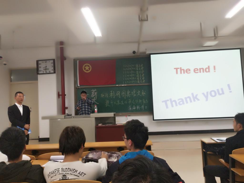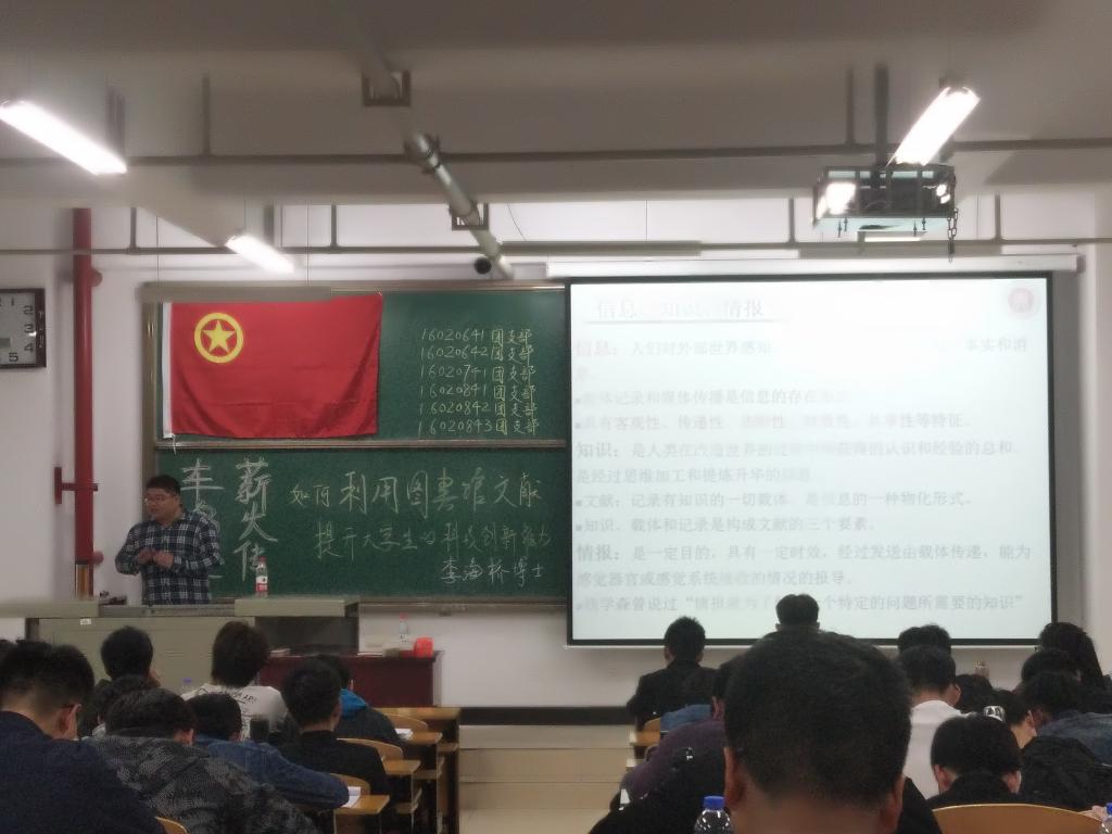 16级其他五个团支部,相聚于15106教室。共同举办了本次的联合团日活动《车鸣起 薪火传——如何利用图书馆文献资料提高大学生的科技创新能力》讲座现场!