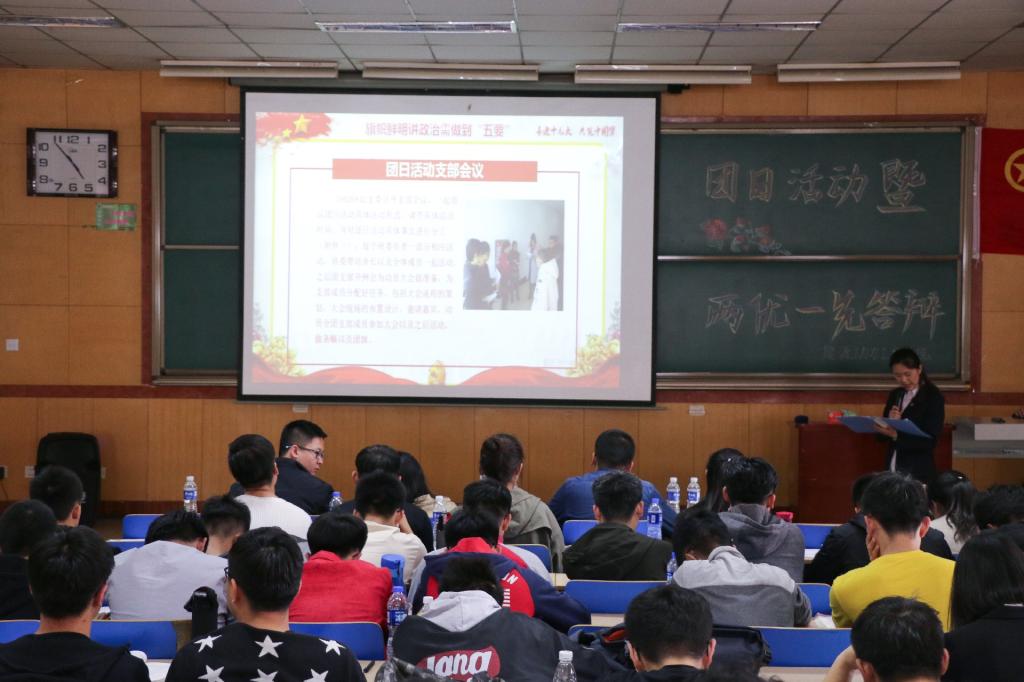 在庄严的团歌过后,答辩正式开始。第一轮是优秀团日活动的答辩。各团支书胸有成竹,详细介绍团日活动的策划、开展和意义。其中,16020641答辩人任晓泽同学面对老师的临时提问,从容应对,颇有风范。第二轮是先进团支部的答辩,在这一轮,各班答辩人也向评委老师们展示了本团支部的思想建设,从团日活动开展,志愿服务,到社会实践,无一不体现了各团支部的整体建设和引领团员青年的工作成果。最后一轮是标兵答辩,每个同学将自己从学习成绩,思想建设,工作成果等当面进行展示,令台下的观众们赞叹不已。
