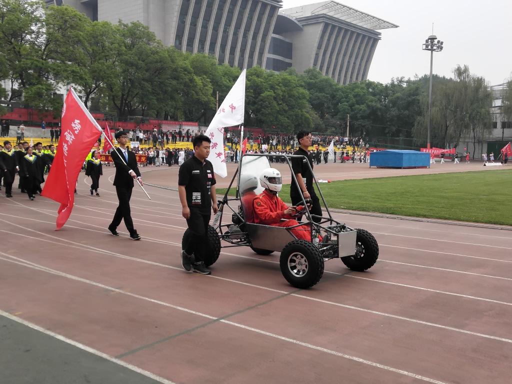 这辆赛车将代表学校出战7月中旬的“2018中国大学生巴哈汽车大赛”,这也是山西省学子第一次参加该赛事。此越野赛车设计最高车速60km/h,整车整备质量仅240kg,整车的设计、加工、装配、调试完全由学生自己完成。车队通过不断摸索,借参加中国大学生方程式汽车大赛的机会,多次到兄弟学校赛车实验室交流、学习,汲取经验;经过前期缜密的理论计算,并用相关软件进行多次模拟,确保每个部件安全可靠,最后着手制作出图,从切钢管焊接车架开始,他们仅用时13天便实现了整车落地,并代表大发彩票走上了2018年运动会。