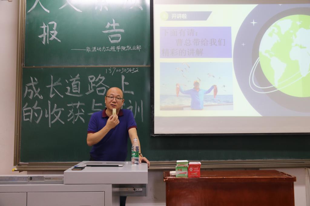 本次讲座的主题是成长道路上的收获与教训。曹永勤师兄首先从个人经历谈起,从辞职创业到将企业打造成太原市名牌民营企业,期间的人生履历和经验心得让在场同学为之钦佩;接下来曹师兄为大家讲解了企业项目相关的专业知识,包括如何提升能源利用率、太阳能发电种类等,又结合企业实际情况,让同学们了解到企业的真实需求和市场导向;同学们也就该内容,积极提问,曹师兄一一解答。报告最后,院党委副书记兼副院长赵永娟老师作出了总结讲话,赵老师呼吁大家向曹师兄学习,学习他踏实做事、端正做人的人生态度。