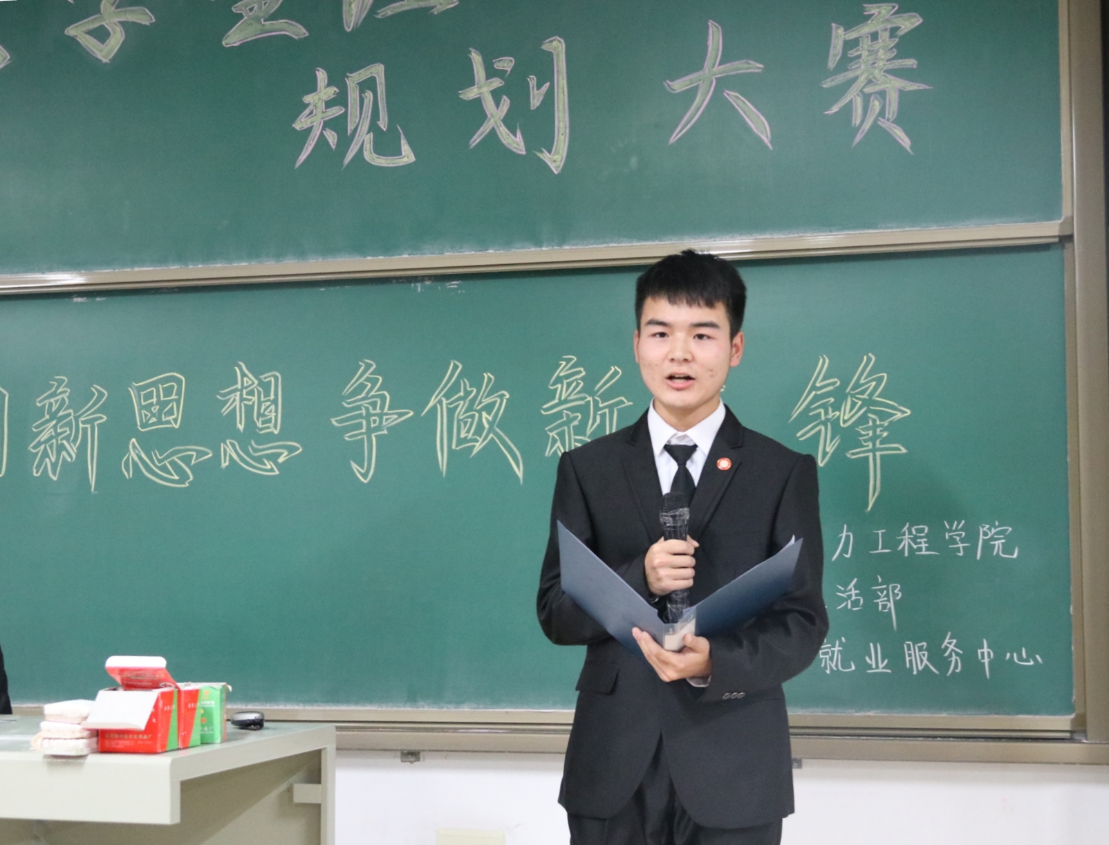 在15302教室举办了“学习新思想,争做新先锋”大学生涯规划比赛。出席本次活动的嘉宾有院团委书记李晓彧、研究生辅导员唐金保,校学生会和各院生活部部长以及院学生会部长级以上学生干部。