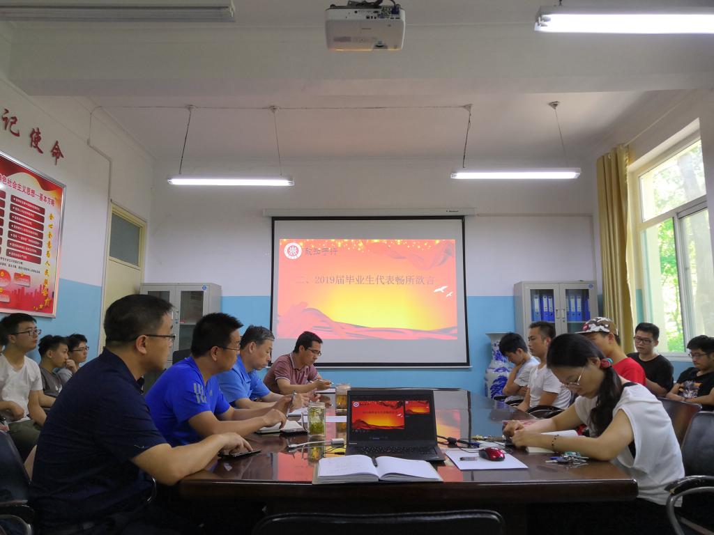 、学校建设发展、教育教学改革、学生管理和服务等方面的意见与建议,6月28日,2019届毕业生座谈会于诚学楼201成功召开。副院长张翼、副院长胡胜亮出席座谈会,学生科科长叶增民主持。教学科,科研科,学科管理部等相关人员均参加会议。