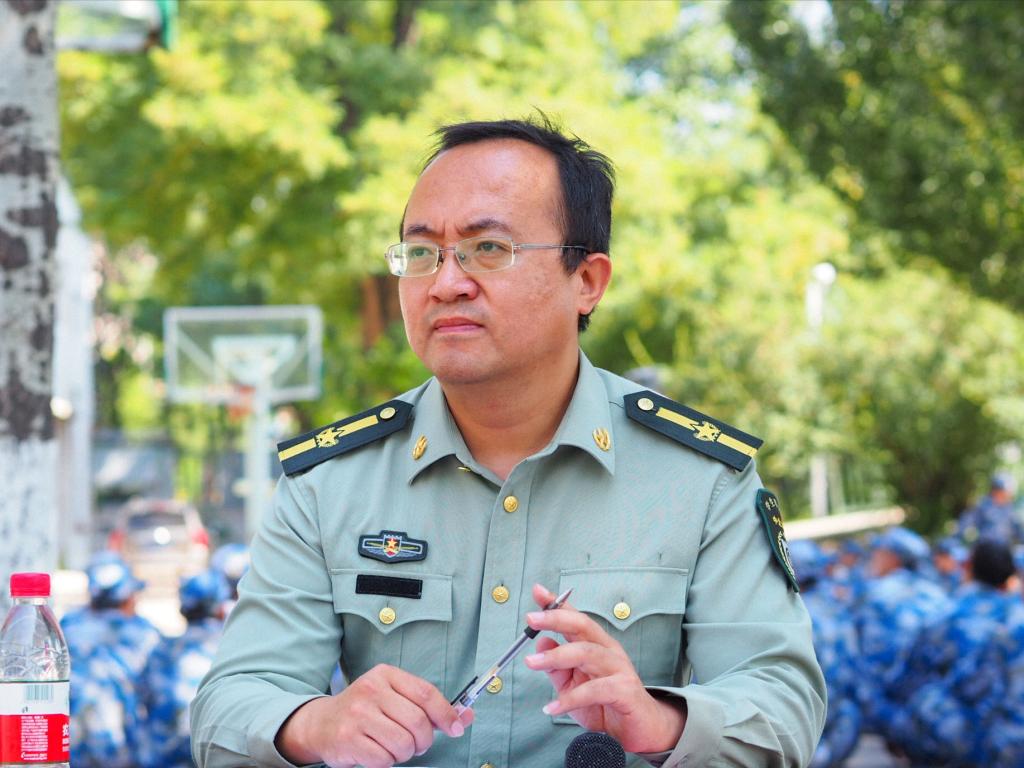 检阅在雄厚壮阔的中国人民解放军军歌中拉开了帷幕,队列考核正式开始。16营副营长李飞和各连连长指挥166连到170连依次进行了考核,同学们整齐划一的动作、铿锵有力的步伐,让与会领导感受到能动学子坚强的意志和敢为争先的精神。随后,李运芝书记发表讲话,肯定了同学们刻苦训练的成果,也对全体教官和指导员的付出与努力表达感谢。他期望能动学子在接下来的训练中继续努力展现出自己的风采。