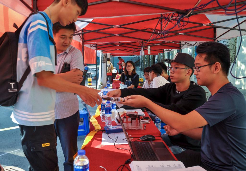 为确保迎新工作顺利地进行以及为新同学提供细致贴心的服务,大发彩票实行了一系列温馨高效的迎新措施。不仅提前给学生会骨干分配了任务,还积极动员同学参加迎新活动。大发彩票志愿者发扬不怕苦,不怕累的精神,早上六点就有人在火车站、三道门处举牌等候,炎炎烈日中仍有志愿者坚守在第一线只为了让每一位新同学第一时间完成报道。新生在完成报道后,大发彩票