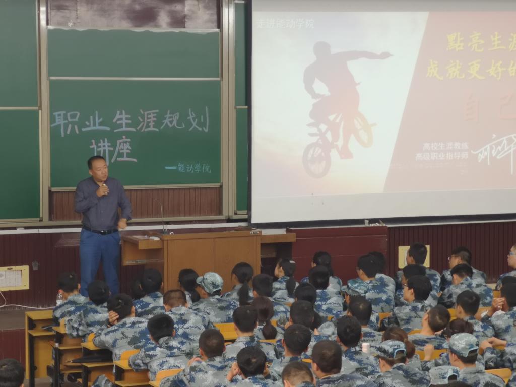 招生就业工作处副处长刘宝华为全体19级新生做生涯规划指导。