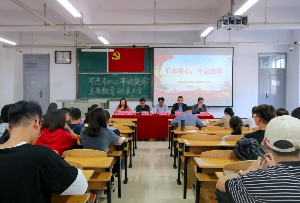 于9月24日在15202H教室举办“不忘初心、牢记使命”主题教育部署会议,本次会议由院党委副书记兼副院长任雁主持,院党委书记李运芝、院长刘汉涛、副院长胡胜亮、副院长张翼,以及全院师生党员一同参加了本次会议。