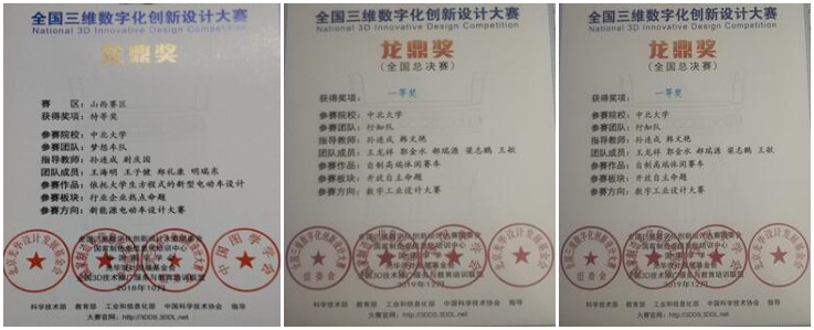 王龙祥、郭金水、郝瑞源、梁志鹏、王敏,指导老师:孙连成、韩文艳),一路过关斩将,在山西省3D大赛荣获特等奖并进军全国总决赛,最终获得全国总决赛一等奖。