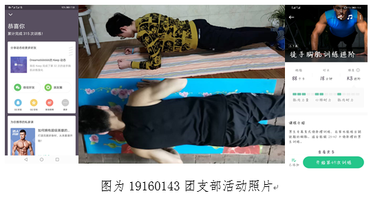 部分团支部组织成员进行室内锻炼,提高体质,利用假期发展兴趣,培养才艺,并在线上与同学们分享。