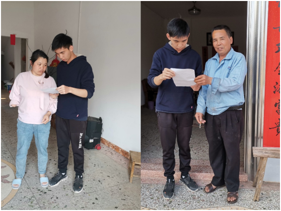 来自2020160401团支部的钟丰阳同学,在寒假期间参与到了当地的房屋安全登记工作中,担任寻访调查的工作,走入平常熟悉的人家之中,用不同的眼光去观察、记录地基,房梁,承重墙有无裂痕,倾斜。再询问房屋建造时间,平常有无漏雨情况等等,并一一记录。钟丰阳同学在走访之中领略了家乡的不同风貌,体会到了书本上没有的东西。他觉得这次志愿活动带给他的是与家乡的联系,与村里人的熟悉。更让他感到骄傲的是他的努力是为了保障家乡人平安幸福。为家乡的建设,贡献了一份青春的力量。