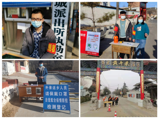 来自17160342团支部的胡馨澜,17160345团支部的逄博,18160144团支部的杨楚豪,19160141团支部的郭欣宇,19160142团支部的张晋东,19160143团支部的陈嘉明,19160241团支部的杨嘉诚,19160243团支部的范明,2020160401团支部的陈然,2020160402团支部的万邦宸、王佳萌和李沛林,2020160404团支部的王首富等13名同学积极响应疫情防控工作的号召,在寒假期间主动承担起了疫情防控的重担,他们志愿服务的主要工作是登记外来返乡人员信息、为社区居民测量体温、进行防控知识宣传,发放防控疫情传单等。他们用自己的实际行动助力家乡疫情防控,没有一个寒冬不会过去,没有一个暖春不到来,在全国人民的共同努力下,在党的领导下,我们终会战胜疫情,谱写新时代的壮美华章。