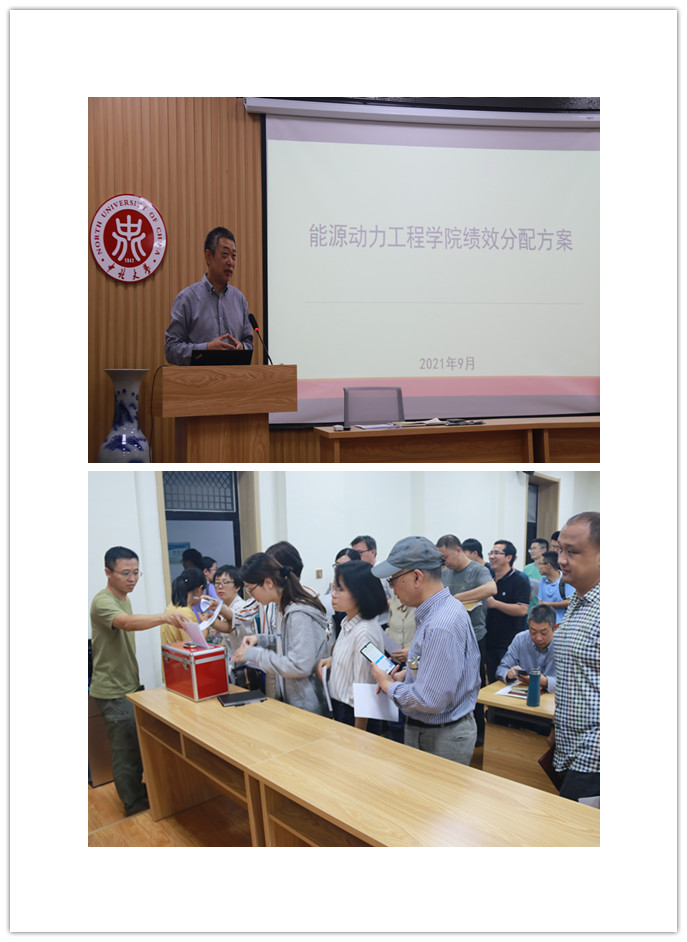 2021年9月14日下午4时, 能源动力工程学院在诚学楼115会议室召开学院发展规划和绩效改革方案阐释并表决教职工大会,会议由学院院长刘汉涛同志主持,全体教职员工参加了会议。