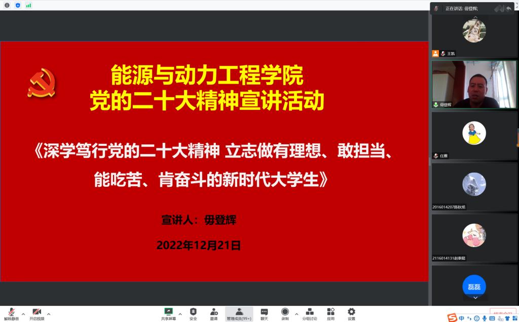 党委召开学习贯彻党的二十大精神线上宣讲会。本场宣讲会邀请校宣讲团成员、学工部毋登辉老师作题为《深学笃行党的二十大精神 立志做有理想、敢担当、能吃苦、肯奋斗的新时代大学生》的专题报告。大发彩票