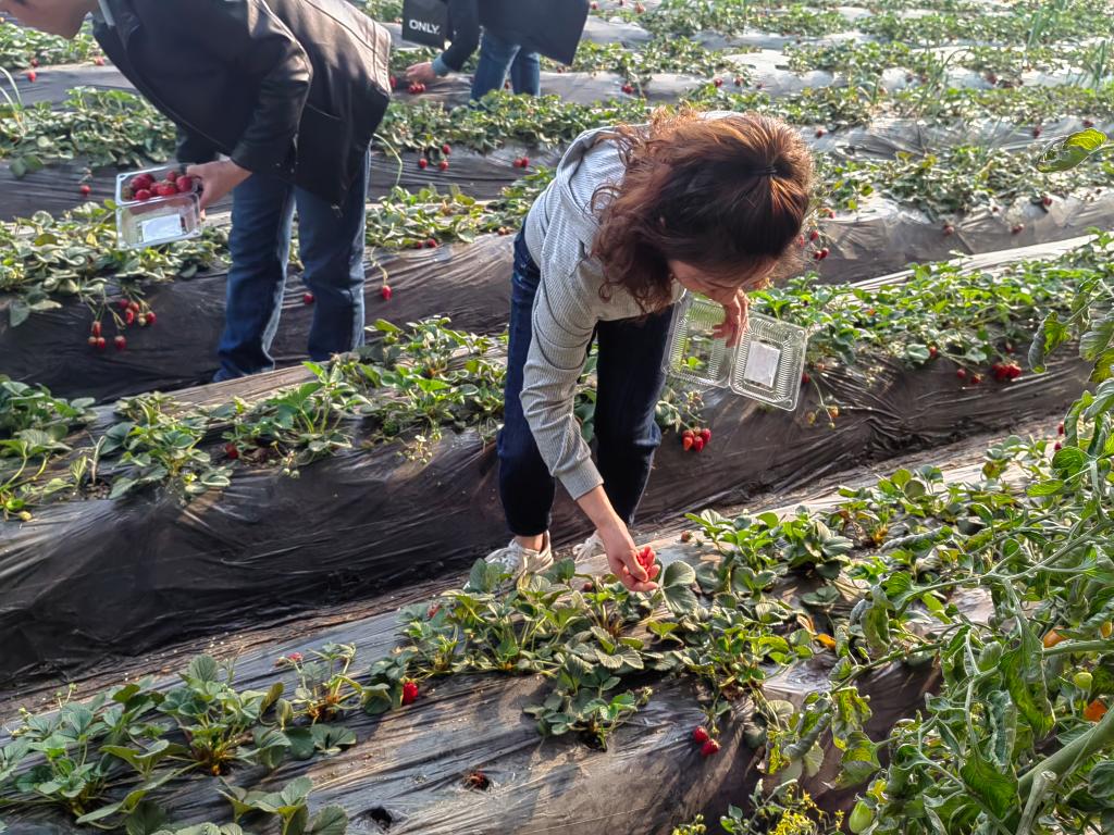 门口集合,领取采摘门票后前往目的地“七色果草莓园”,一路欢声笑语,畅聊人生。走进草莓大棚,一阵阵清香扑鼻而来,老师们三个一伙五个一群地开始采摘起来。绿油油的枝叶下簇拥着颗颗鲜红的草莓,让人垂涎欲滴。大家手拿盒子,穿梭在草莓田间尽情畅游在这份“莓好”之中,体验品尝、采摘的乐趣。活动结束后,每个人都满载而归,脸上洋溢着满足的笑容。