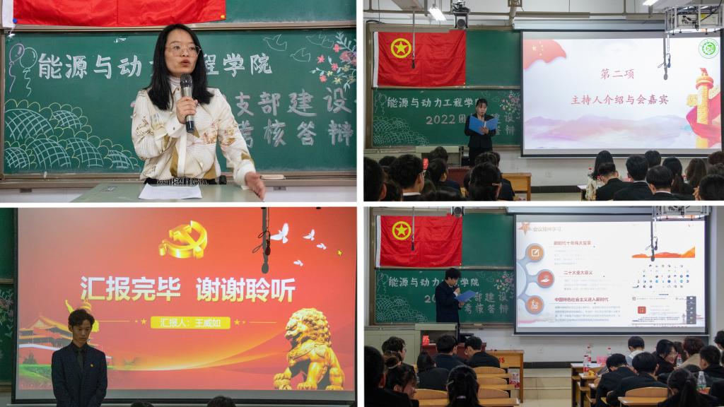 答辩在雄壮激昂的团歌中拉开帷幕,李晓彧老师鼓励同学们以自信昂扬的姿态对团支部工作进行详细的总结,号召同学们积极投身时代的洪流,深入学习二十大的相关精神,担当起新时代青年的责任,为国家发展贡献力量。随后,各团支部依次通过PPT和现场讲解的方式对本支部年度建设工作进行总结汇报。详细介绍了各支部基本情况、理论学习情况、团日活动的开展情况,展示了各支部所获得的荣誉并对过去进行总结、对未来进行展望。总结汇报过程中,各团支部利用视频、手册等形式进行生动展示,活跃了现场的气氛,使得团日活动分享更加进栩栩如生,使得观众们身临其境。