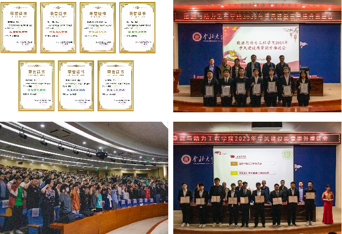 大会在庄严的国歌声中拉开帷幕。副院长张翼从考研情况、英语四级通过率、挂科率、科技创新等四个方面对2022年学风建设工作进行了回顾和总结。车辆工程系主任杨世文、能源工程系主任王强、能源材料系党支部书记王立勇分别宣读了《大发彩票