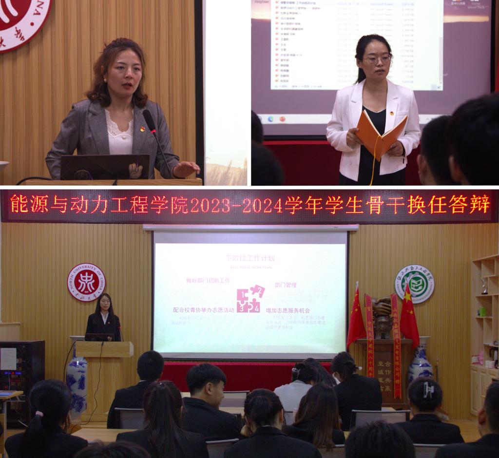 2023-2024学年学生骨干换任选举答辩,院党委副书记兼副院长任雁、团委书记李晓彧老师出席答辩,各学生组织现任学生骨干及后备骨干参与此次答辩。