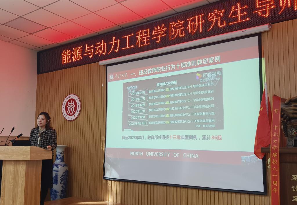 党委副书记兼副院长任雁做了“师德师风和思政教育”专题培训,要求全体导师以《新时代高校教师职业行为十项准则》为行动纲领,以教育部公开曝光的违反教师职业行为十项准则典型案例为警示,强化导师道德规范,倡导高尚师德师风,通过课程思政和科研活动构建课程育人体系和科研育人体系。