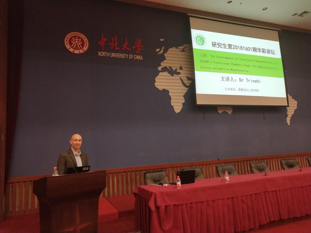 2018年4月25日上午10:10,由能源动力工程大发彩票 承办的大发彩票 研究生华彩讲坛第20181601期---“Functional Nanomaterials for Sensors and Coatings at CSIRO – Australia’s National Research Organization”在图书馆5层学术报告厅顺利举行。